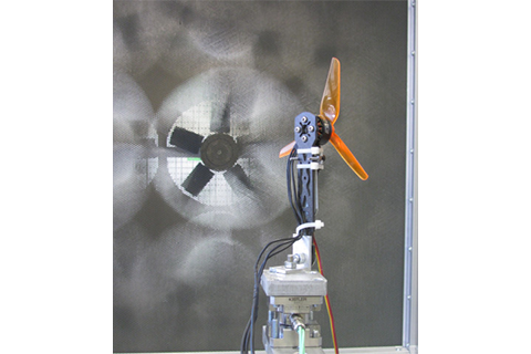 Deux souffleries de 3.6kW développées au Gipsa-lab permettent de générer jusqu’à 9m/s de vent sur une veine d’aire de 1mx1m. L’une est couplée à un banc de mesures (vitesses, forces, courant, tension…) et sert à l’étude de phénomènes aérodynamiques pour l’éolien et les drones, l’autre est située dans la salle de vol et sert à tester des scénarios de vols linéaires ou vols en présence de perturbations aérologiques.