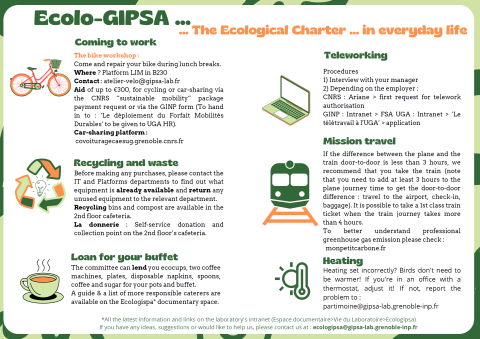 • Rédaction d'un guide pour informer les membres du laboratoire sur des outils et des pratiques permettant d'adopter la charte écologique dans leur quotidien